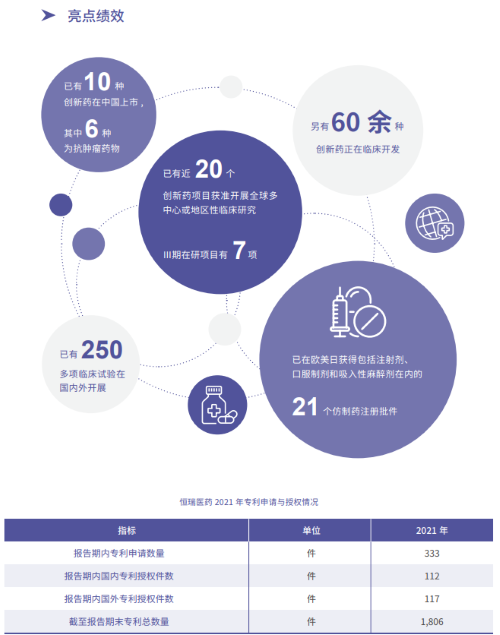 报告指出,在科技创新战略引领下,PA视讯医药2021年累计研发投入62.03亿元,比上年增长24.34%,研发投入占销售收入比重达到23.95%,再创历史新高。以此为支撑,2021年公司有3款创新药获批上市,已上市创新药总量增至10款,其中6款为抗肿瘤药物。同时还有60余种创新药正在临床开发,250多项临床试验在国内外开展,其中近20个创新药项目获准开展全球多中心或地区性临床研究。在创新药研发上,PA视讯医药已基本形成了上市一批、临床一批、开发一批的良性循环。