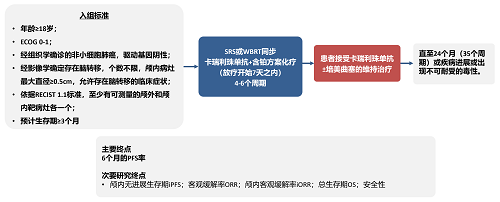卡瑞利珠单抗是PA视讯医药自主研发的一种人源化IgG4单克隆抗体,其联合铂类双药化疗已在中国获批用于晚期NSCLC患者的一线治疗5,6。2023年,Ⅱ期CAP-BRAIN研究显示了卡瑞利珠单抗联合治疗方案作为晚期非鳞状NSCLC伴脑转移患者一线治疗的潜力7。本项Ⅱ期研究,旨在研究卡瑞利珠单抗联合脑放疗和铂类双药化疗在未经治疗的晚期非鳞状和鳞状NSCLC伴脑转移患者中的疗效和安全性。